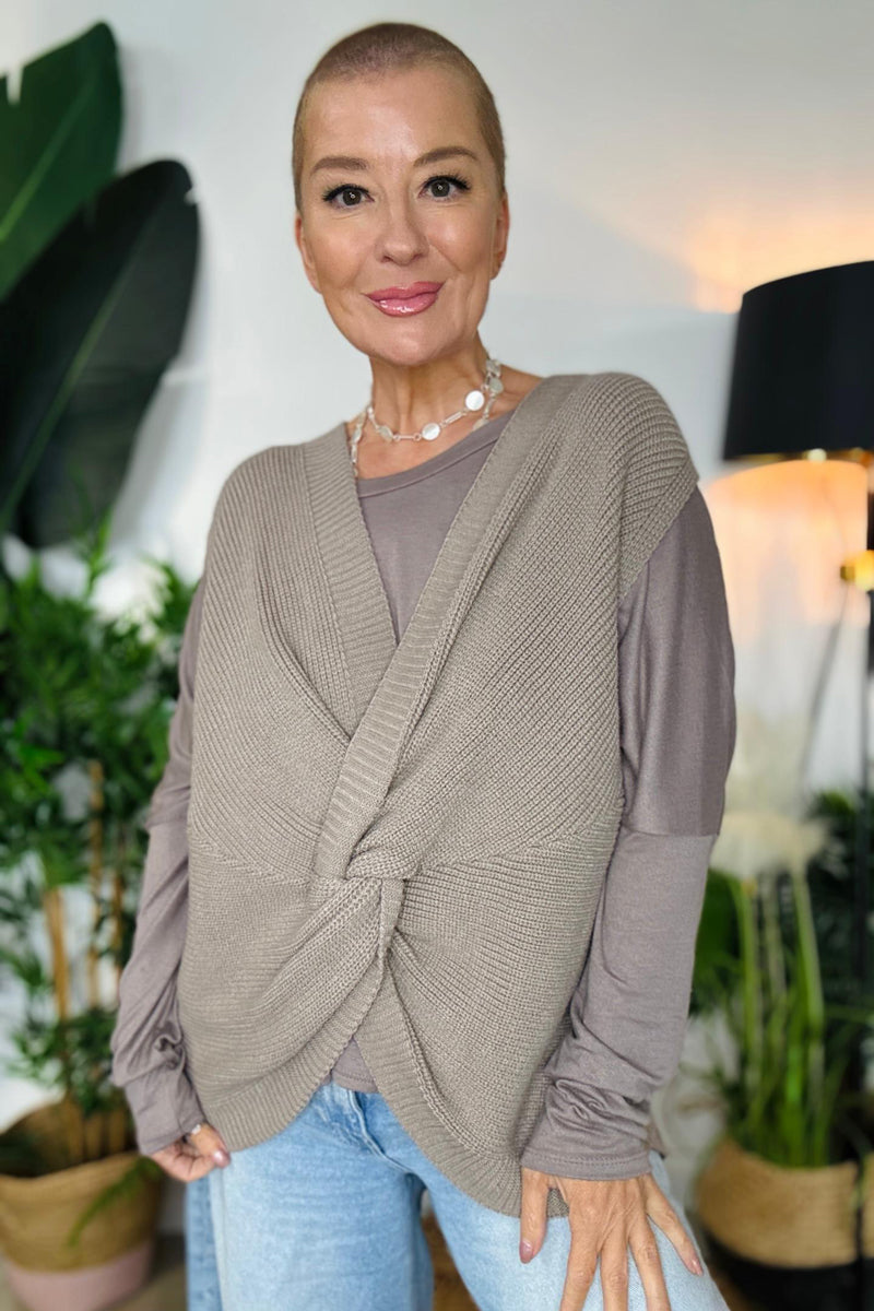 Soft, effortless, and easy to wear, the Twist Front Sleeveless Knit is your new layering essential. Crafted with a gentle drape, the front twist adds subtle shape and interest, while the sleeveless design keeps it versatile for pairing with jeans, skirts, or layering under jackets and cardigans. Comfortable, casual, and endlessly wearable—this knit is all about relaxed, everyday style.