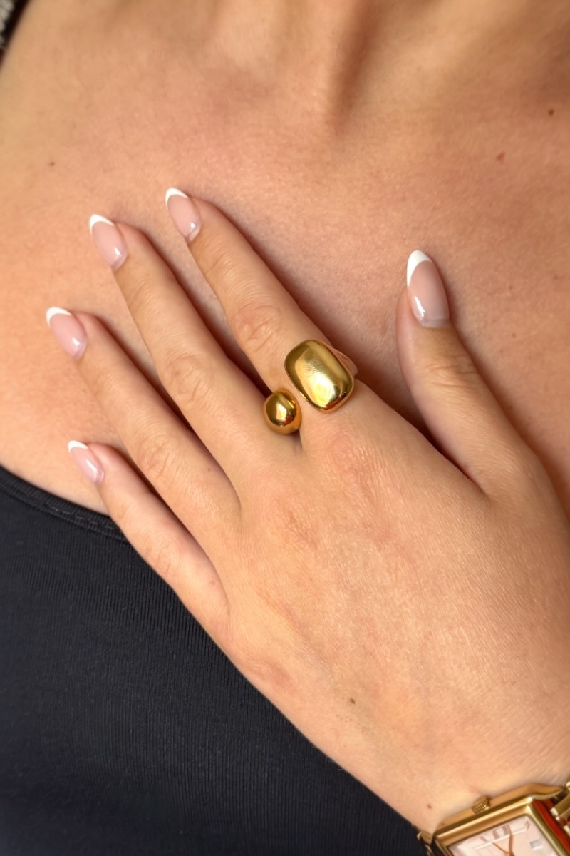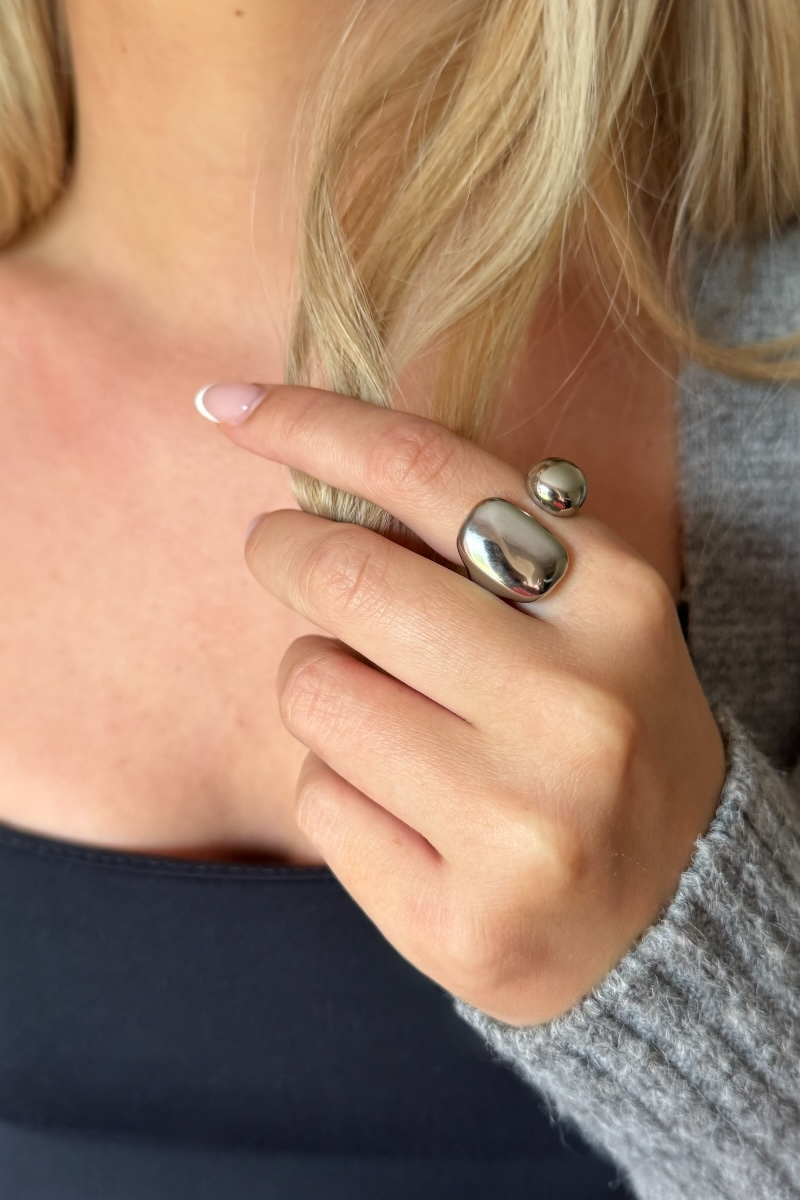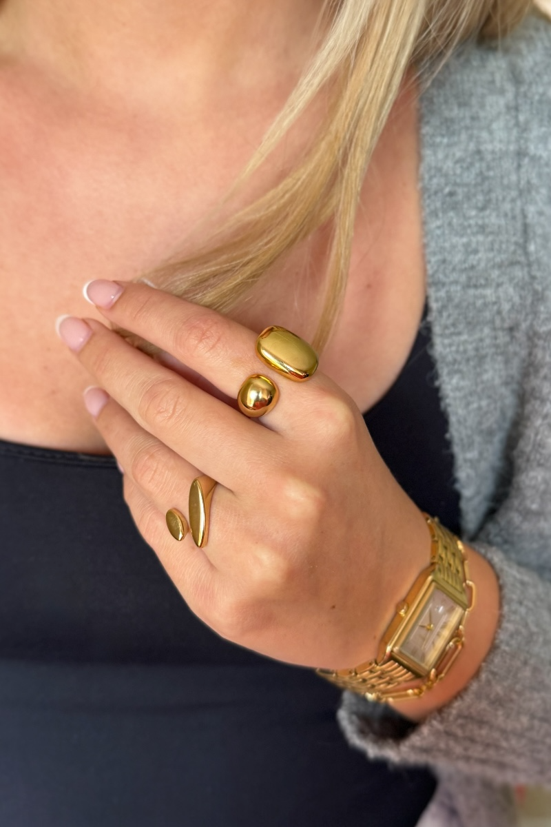 Abstract ring in Silver and Gold. Made from Stainless steel which doesn’t tarnish.