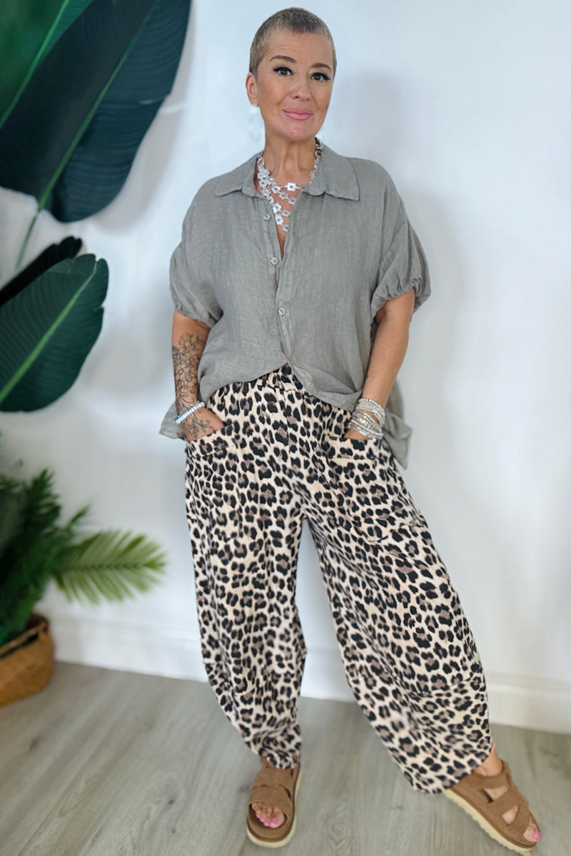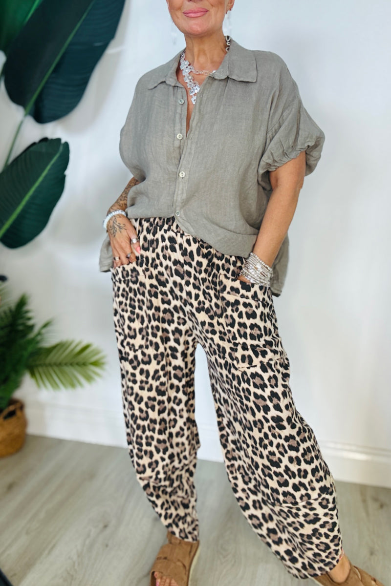 Brooke Patch Pocket Barrel Pants - Leopard Print