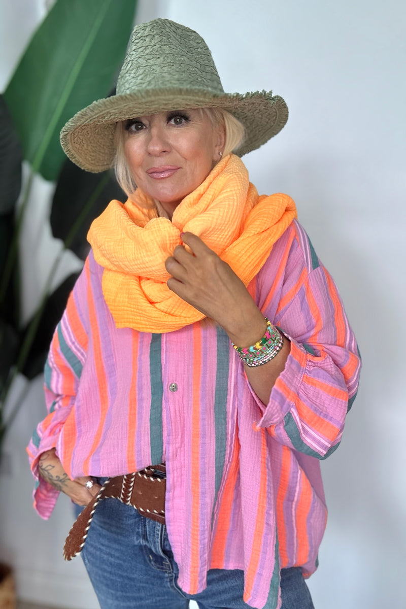 Add a splash of colour to your summer wardrobe with this neon cotton waffle scarf. Light, soft, and full of personality, it’s the kind of piece that works in more ways than one - wear it as a bold scarf or throw it on as a beach cover-up. The bright neon tones bring instant good vibes, perfect for sunny days and holiday getaways.