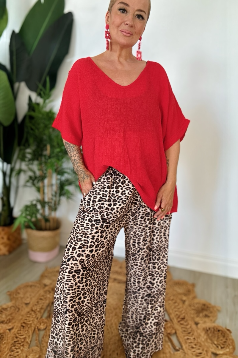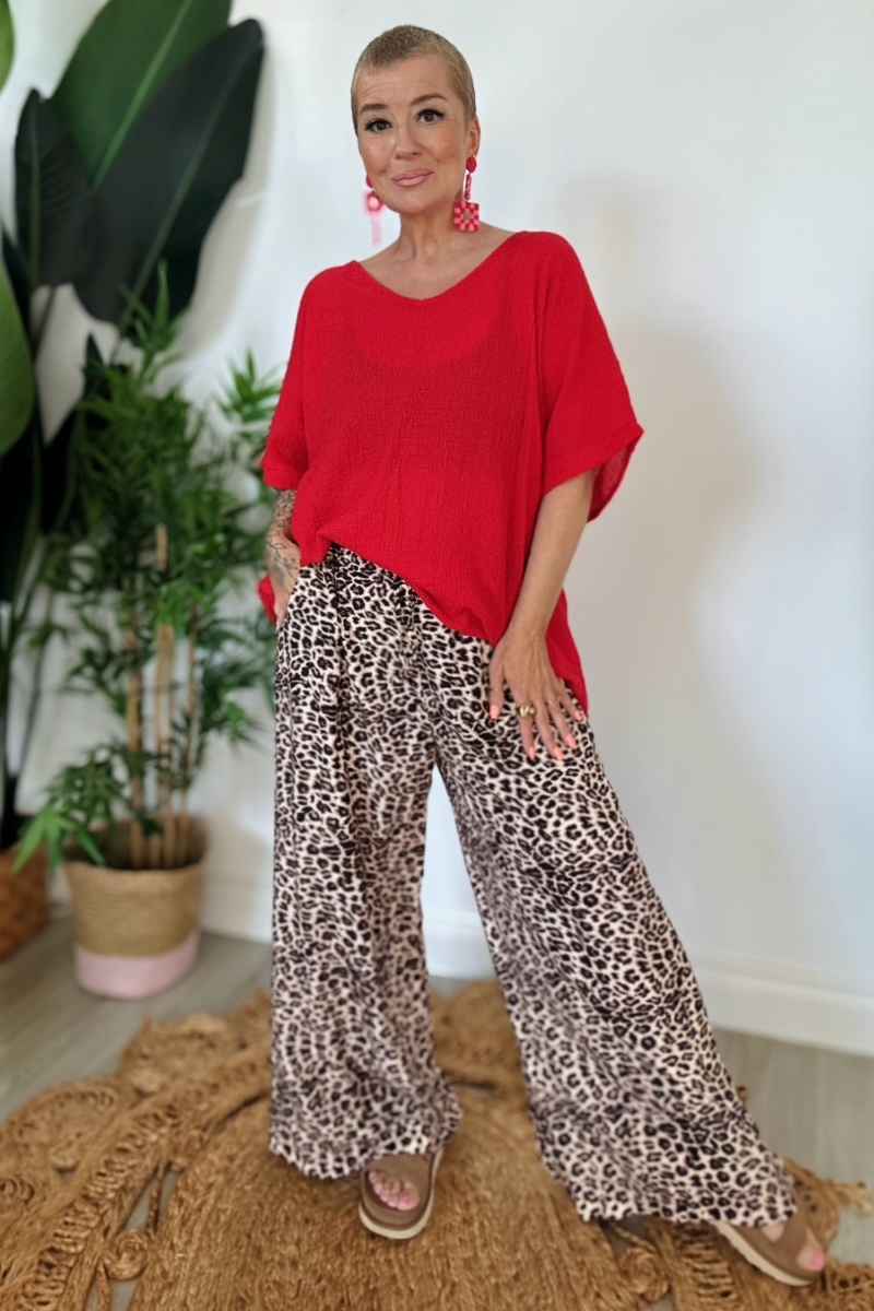 Step into style with the Goa Leopard Print Trousers! With a wide-leg design, these trousers are as easy to wear as they are to style. Trendy, comfortable, and perfect for making a statement – they’re a must-have for your wardrobe!