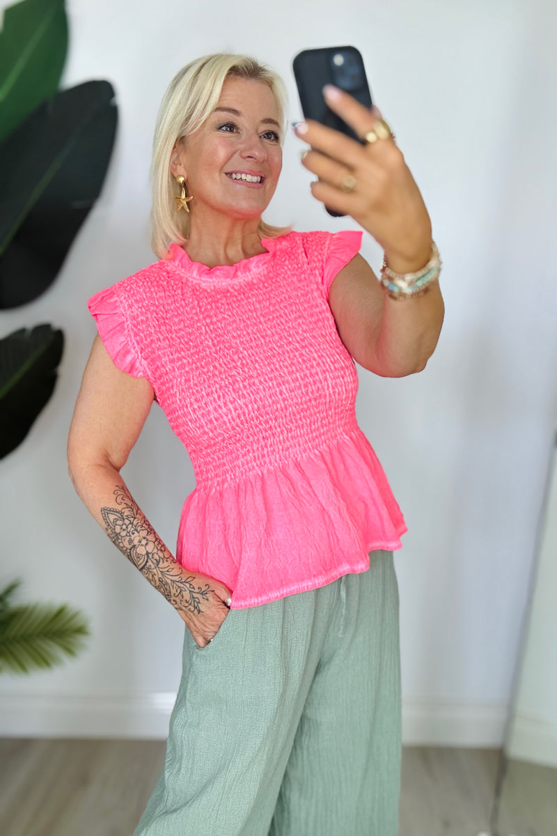 Roxy Shirred Short Sleeve Top