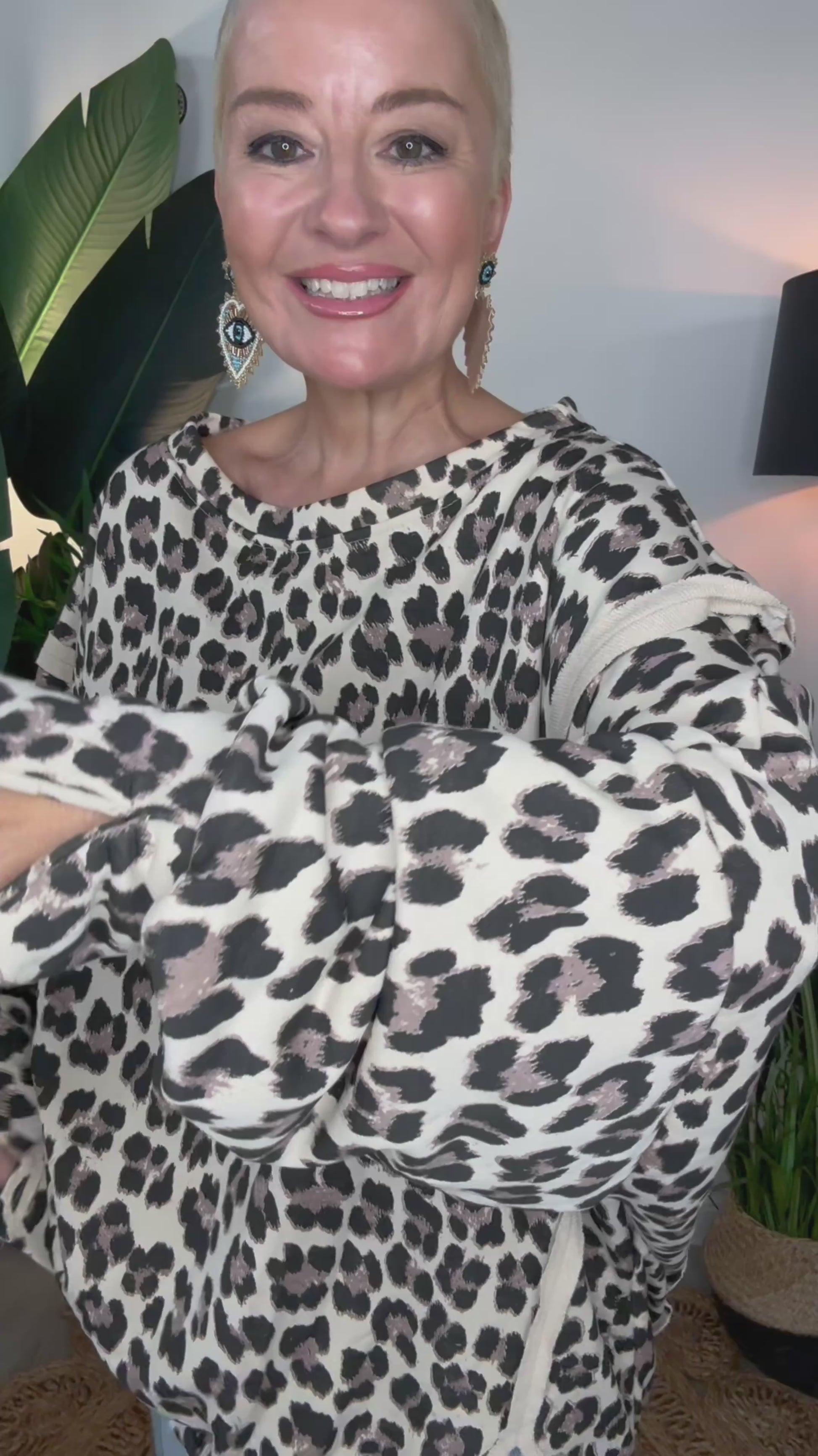 Get ready to slay in our Quinn Loose Fit Leopard Sweatshirt! This on-trend sweatshirt features a loose fit that's perfect for lounging, as well as seam detailing and split cuffs for an edgy vibe. The bold leopard print adds a touch of fierceness to your wardrobe. Pair it with leggings or denim for a stylish and comfortable look.