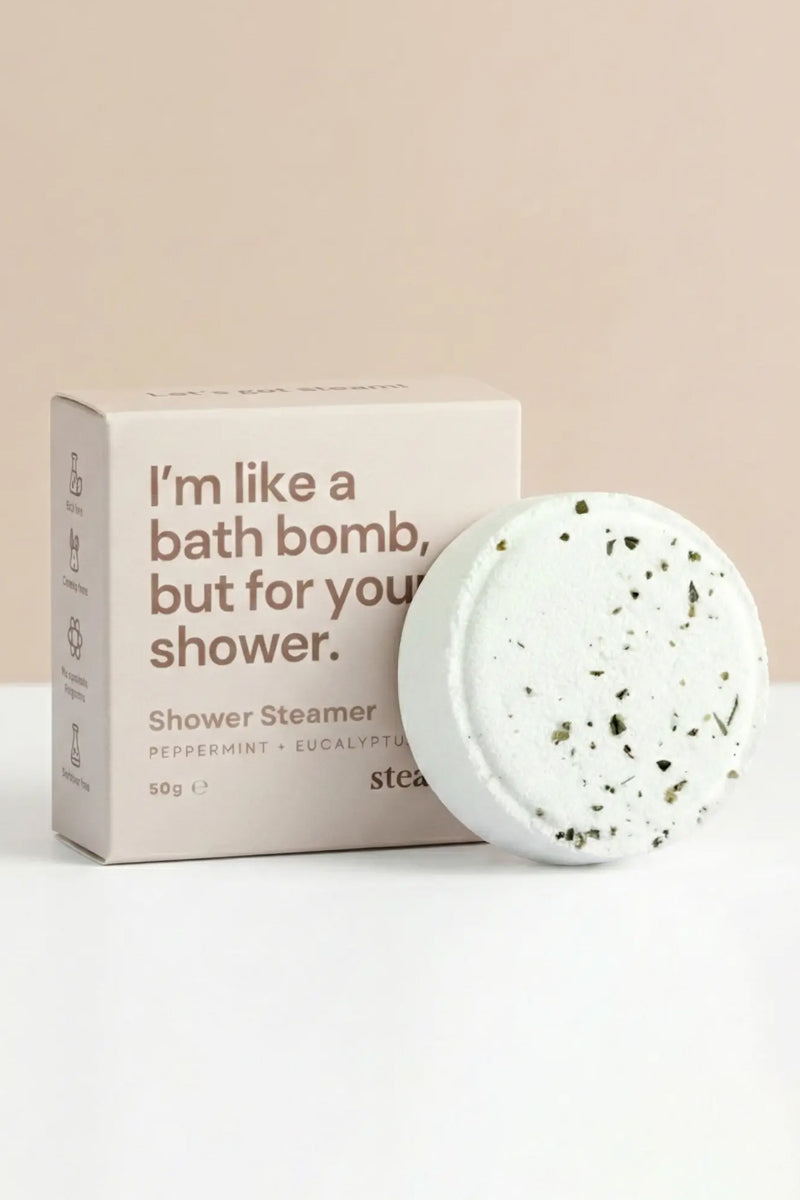 Turn your everyday shower into a mini spa with this 100% natural Shower Steamer. Just place it on the shower floor, let the warm water splash, and watch it fizz and release refreshing peppermint and eucalyptus. Perfect for gifting or treating yourself to a quick, uplifting escape.