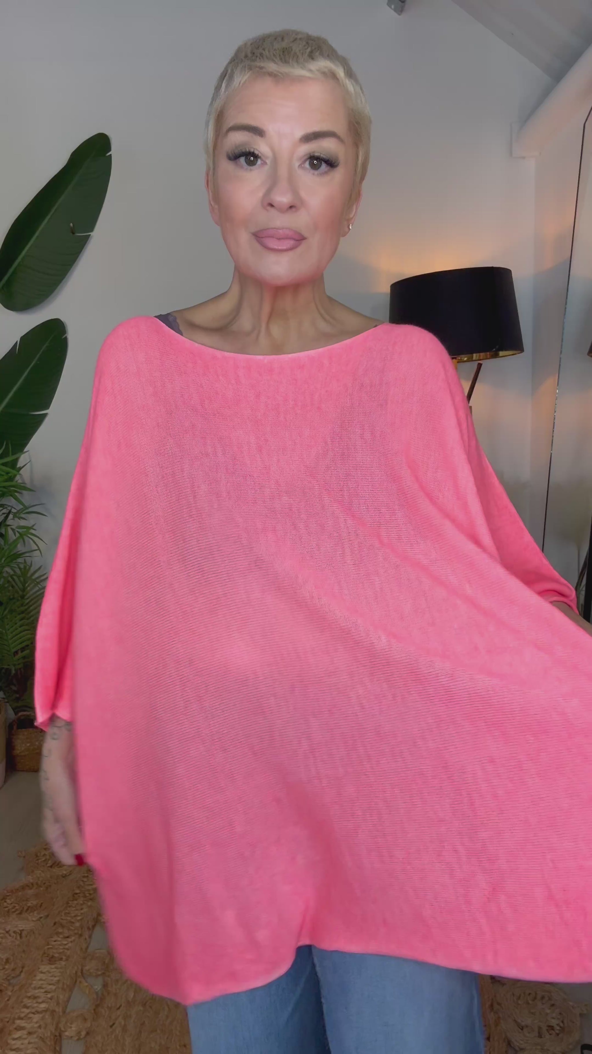 Crafted from a breathable fine knit, this versatile top features a wide boat neckline, loose batwing-style sleeves and a soft stretch finish for maximum comfort. Whether paired with jeans, layered over a cami, or styled with wide-leg trousers, it creates that relaxed, luxe off-duty look your wardrobe needs.