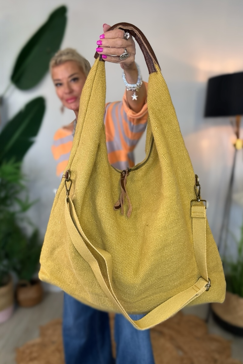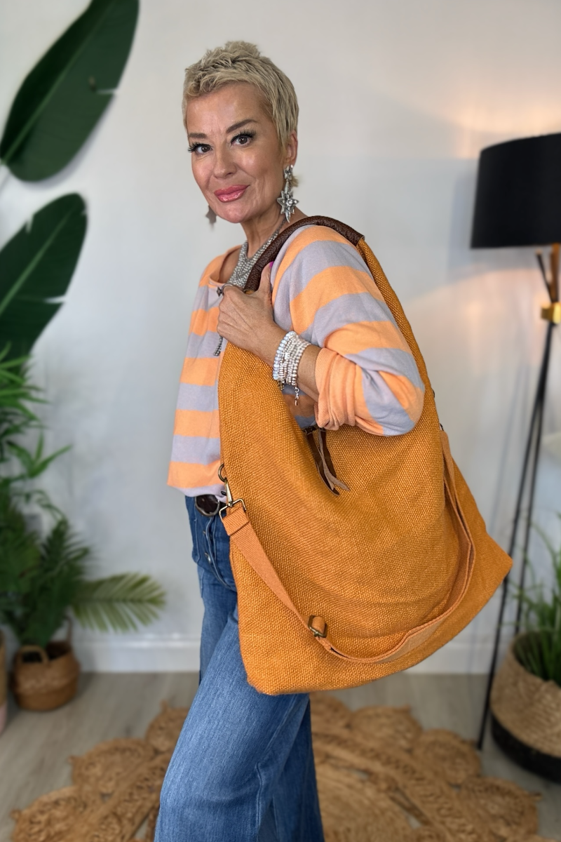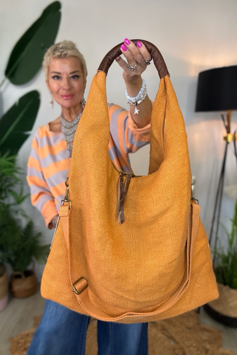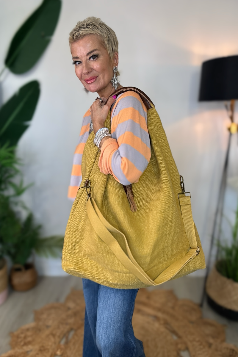 Relaxed, roomy, and effortlessly wearable, the Slouchy Hobo is crafted in a textured hessian-style fabric with a faux leather shoulder handle. Fully lined, it features two zipped compartments inside and a detachable crossbody strap, giving you versatile styling options. Wear it on the shoulder or across the body for a casual, everyday bag that’s as practical as it is stylish.