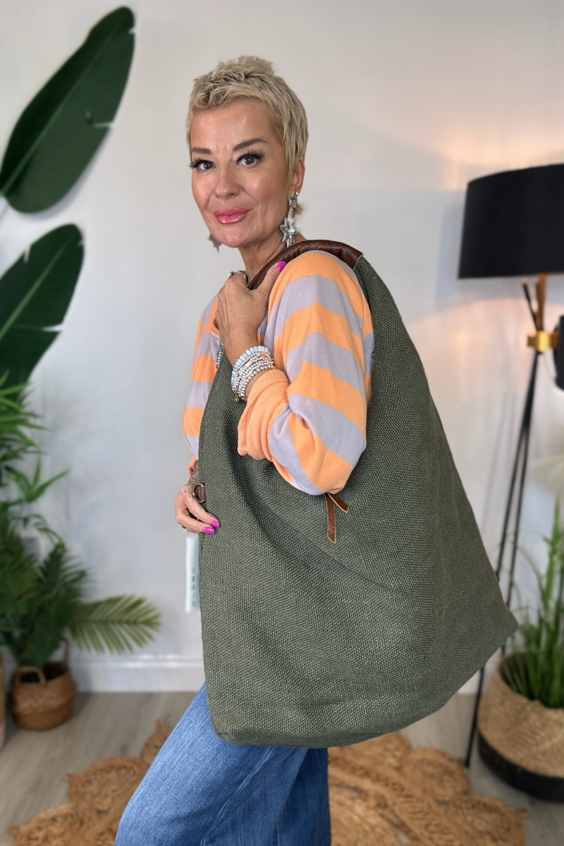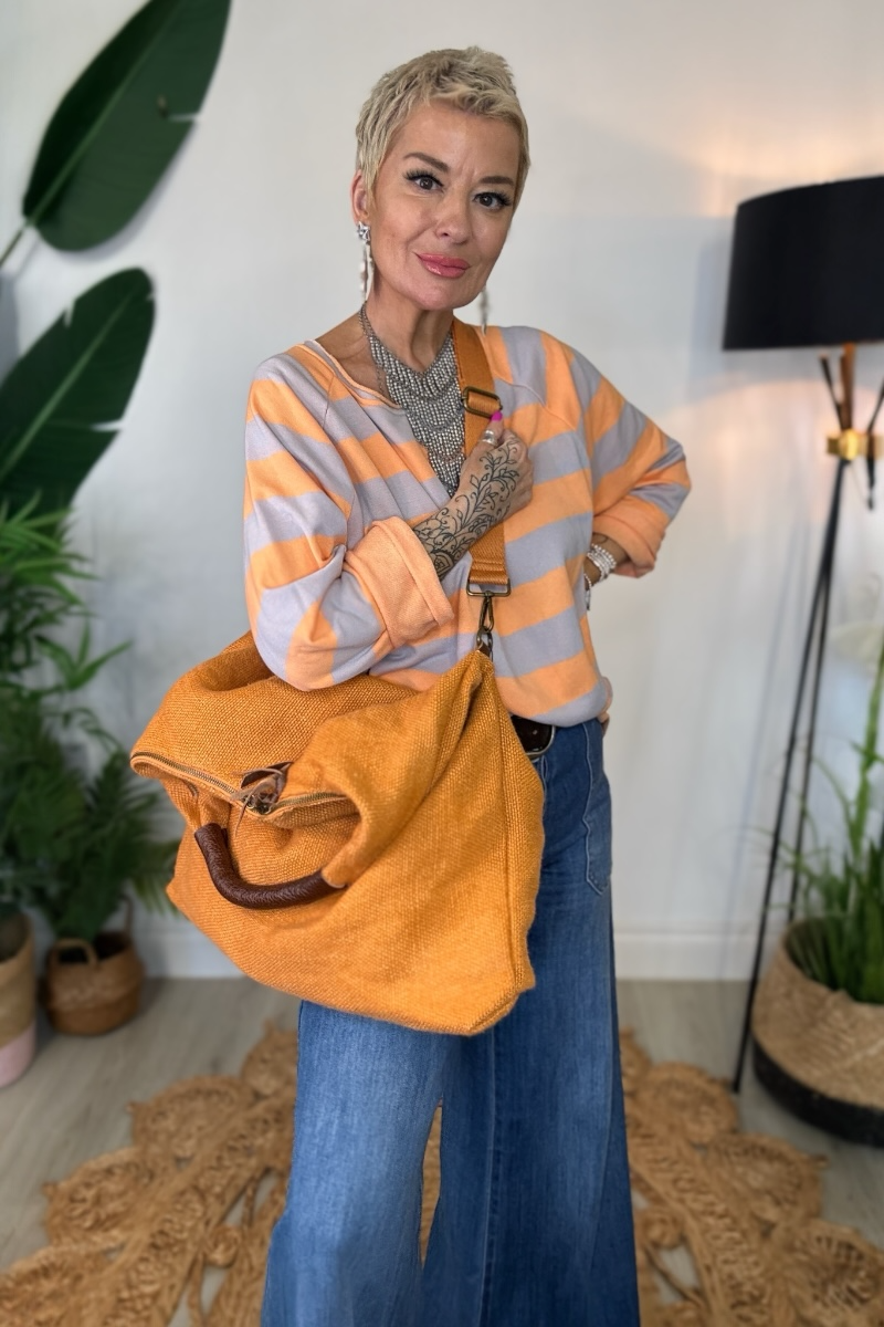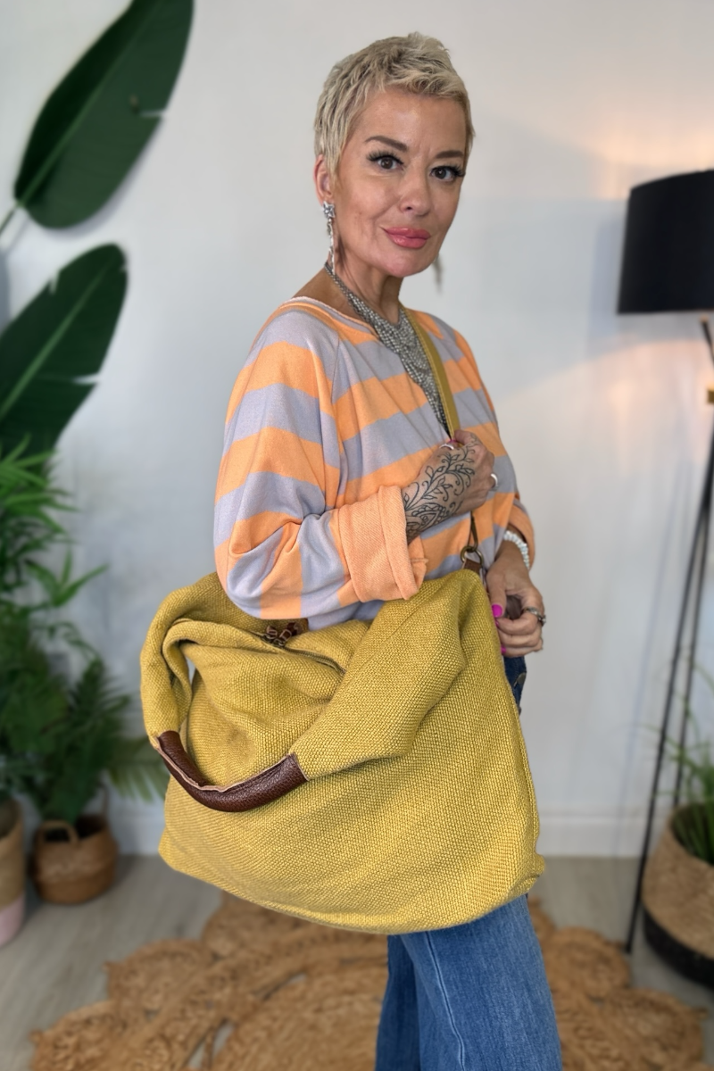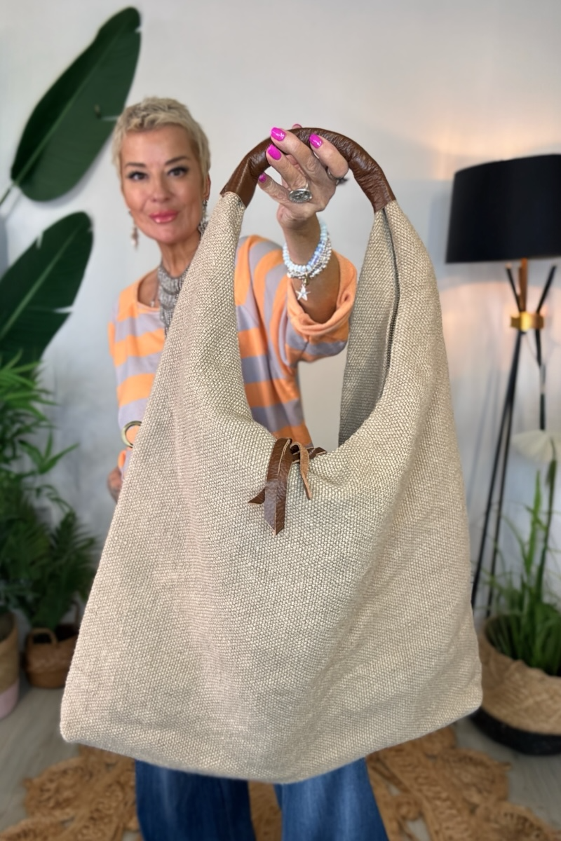 Relaxed, roomy, and effortlessly wearable, the Slouchy Hobo is crafted in a textured hessian-style fabric with a faux leather shoulder handle. Fully lined, it features two zipped compartments inside and a detachable crossbody strap, giving you versatile styling options. Wear it on the shoulder or across the body for a casual, everyday bag that’s as practical as it is stylish.